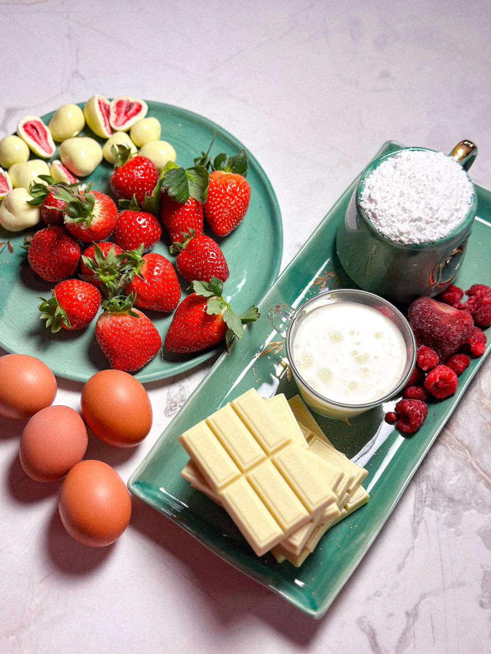 Ingrediente pentru mousse de ciocolată albă și căpșuni