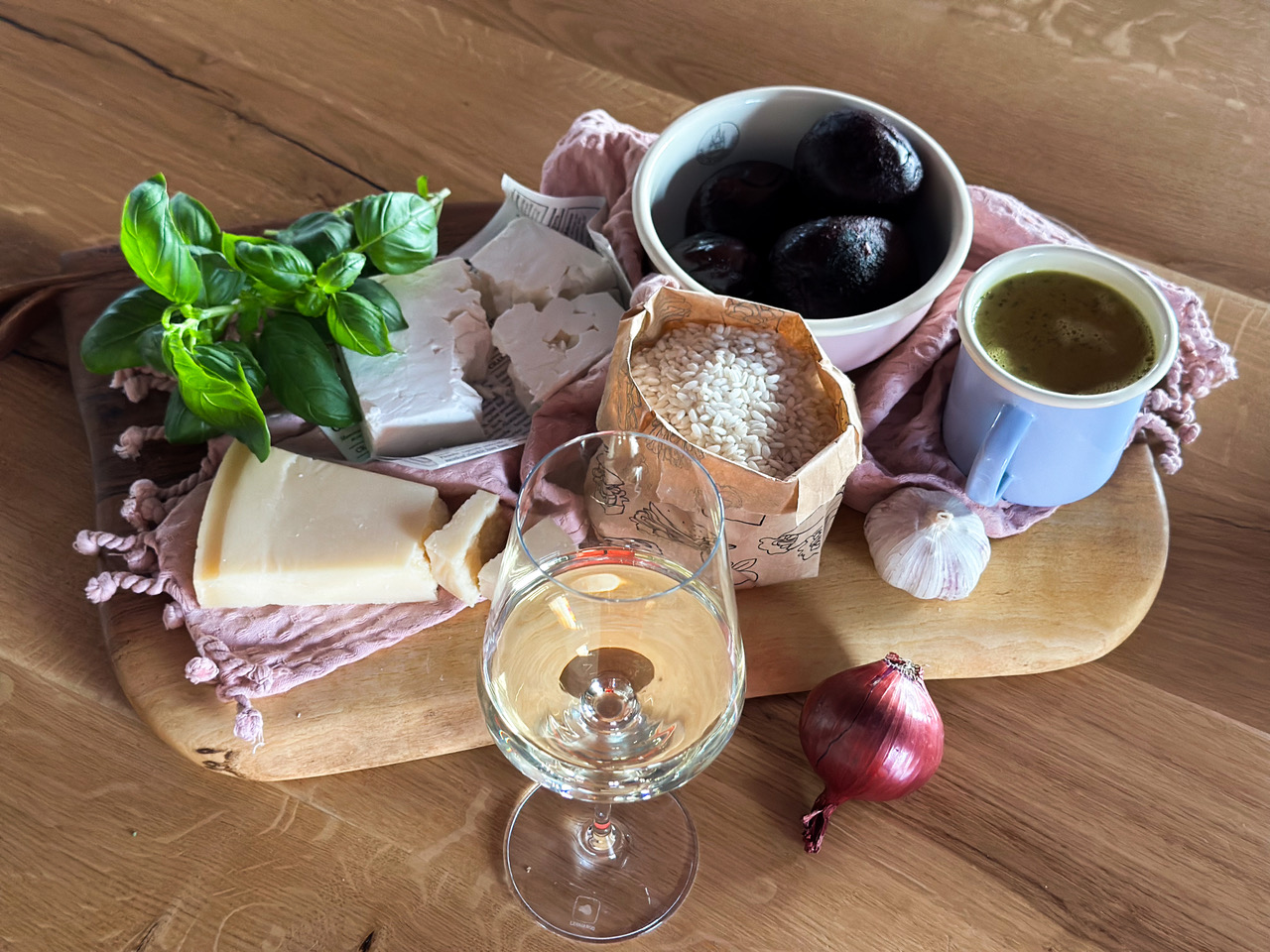 Ingrediente pentru risotto cu sfeclă roșie și brânză de capră